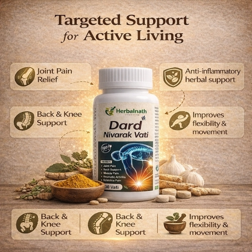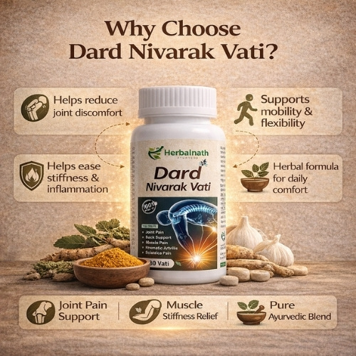 Dard Nivarak Vati is a trusted Ayurvedic pain relief formulation crafted to provide natural support for joint, muscle, and back-related discomfort. Developed using traditional Ayurvedic principles, this herbal medicine helps reduce inflammation, stiffness, and chronic pain without harmful side effects.