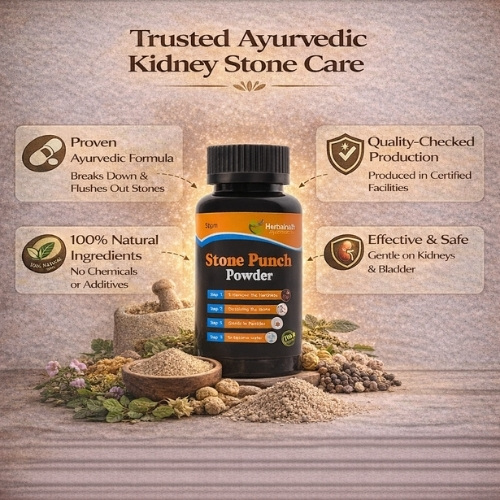 Stone Punch Powder is a specially formulated Ayurvedic proprietary medicine created to assist in kidney stone management and urinary tract wellness. Prepared using traditional Ayurvedic principles, this herbal powder supports the natural dissolution of stones and promotes smooth urinary flow.